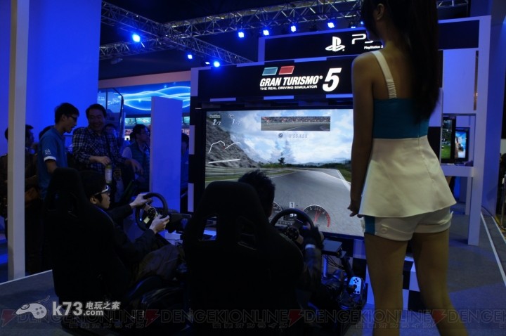 《GT5》试玩区还有美丽的ShowGirl在旁边指导哟!