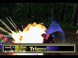上图是Squall发动的连续斩。当连续剑发动时,屏幕下方会出现一道长槽(叫做连续斩技量表),并有一波一波的冲击波从右移向左,当波的前沿到达左起第二个方格(上面左下图中有红圈的那格)时按下Trigger键(意思是扣扳机,这也就是枪刃的追加输入,PC版默认E键),来提升攻击力(1.5倍),当全部按准后将显示Perfect,否则只会显示按正确次数。