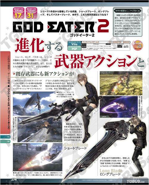 在最新一期的Fami通杂志中透露NBGI预定于2013年发售的PSP/PSV双平台游戏《噬神者2》将有新角色(罗密欧)登场,时同也公开了武器进化、技能动作方面的情报。