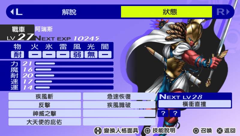合出来之后开始继续刷技能同等道理!再合出不是胜利这个技能的时候不要选择读档,而是用24的迦温跟其他任何P再次合成,继承技能的时候一定要把那个LV7的技能继承,然后合出来的P登录全书,用全书再次买出迦温,两者合成,这样就算不出胜利但会得到有两个LV7技能的P,然后反复这样刷技能的几率会高上很多