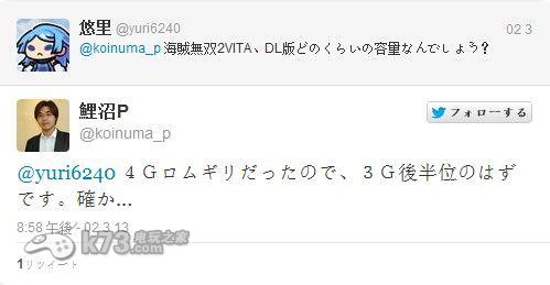 NBGI将于PS3和PSV平台发售的《海贼无双2》的下载版容量终于得到了判明,制作人鲤沼久史于今天在推特上发表声明称这款游戏的下载PSV下载版容量高达4GB,内容相当的丰富,同时制作人还回答了关于双版本间奖杯系统的问题。