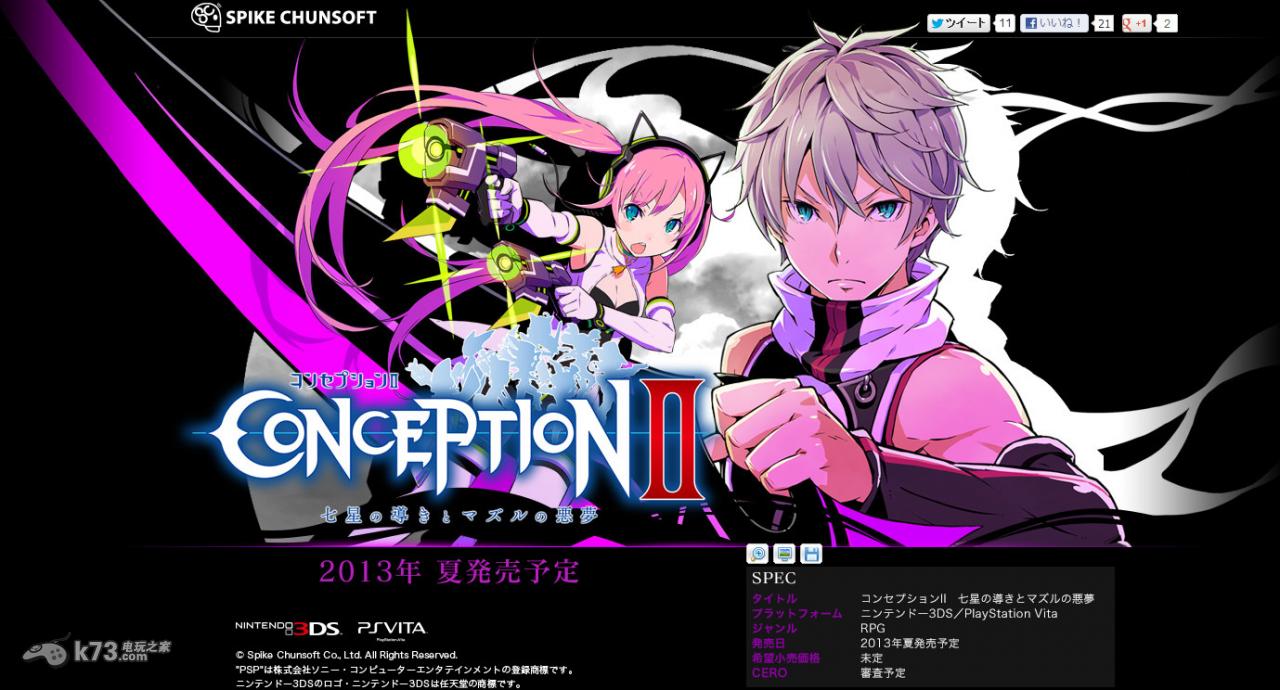 spike于日前公开了其将于PSV和3DS双平台发售的角色扮演游戏《受孕2/为我而生2》的官网页面,同时官方还透露了此作将会于2013年夏季发售,官方还流出了两组游戏的实机截图,为3ds版和PSV版的对比图。