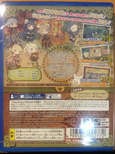 圣魔导物语!等了好久终于收到啦!是说这游戏真的好冷门啊!比魔眼凝望还冷门吧~ 哈哈,当初只是在发售列表看看,就看到这款游戏,没想到这风格一整个对味...除了可爱鲜艳的风格外,就属游戏方式最爱!这不是不可思议迷宫类的游戏吗?VITA玩得到!(神奇宝贝救难队:不思议迷宫风尘英雄勇者斗恶龙:特鲁内克大冒险都是这类型),感谢厂商迅速的偷跑。