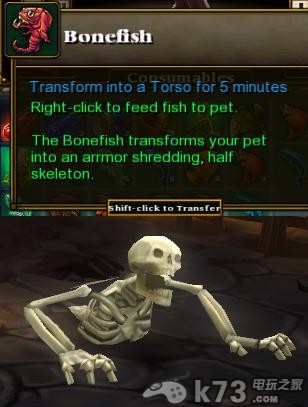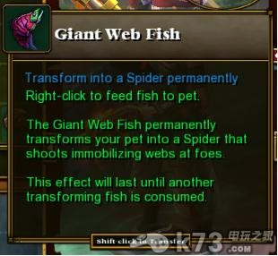 目前测试,不管野外还是营地都有机会钓到大鱼及装备,普通的变身5分钟,大( BIG )的变身15分钟,巨大( GIANT )的变身永久,而且宠物可以用SHIFT+左键捡取装备(装会在宠物身上)。依照名称字母排序: