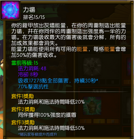 配合力场+充能领域可以让你在Elite行走,但是盾在没有满的情况下,一忘记补盾就是躺地板。突击和暴风爆裂择一就可以了,主要是进场和逃跑用,前者没有CD,所以灵活度来说我选这技能。 未来如果洗点数后,重点会摆在暴击、回魔和魔攻上。我目前有尝试不用火伤加成下,是否也可以达到这高度,但是目前似乎不行。