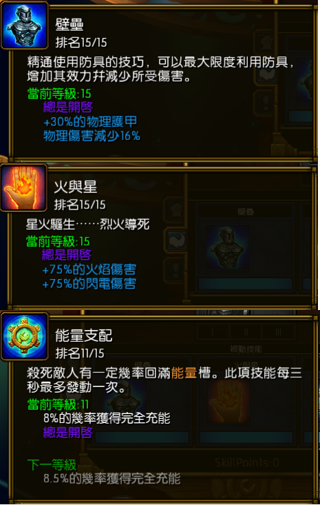 第二页回血机器人满,被动物理防满,火与星满,能量支配11