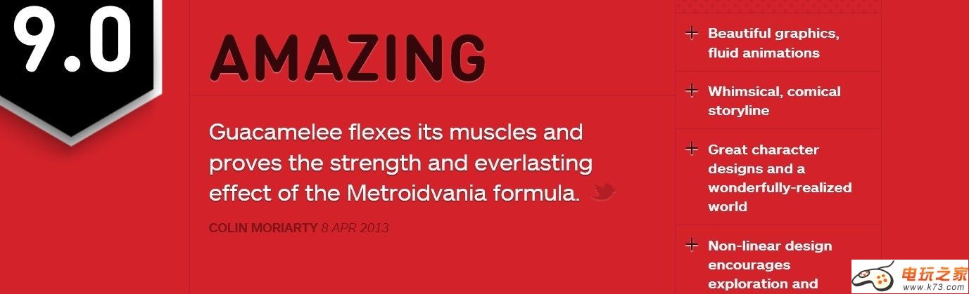 PSV/PS3《墨西哥明星大乱斗》获IGN 9.0分好评,评价该作不仅看起来很美,而且玩起来乐趣十足。毫无疑问它受“银河恶魔城”风格的启发,又有很多地方能独树一帜,至少它的战斗和两极世界系统都是游戏玩起来很有动力。