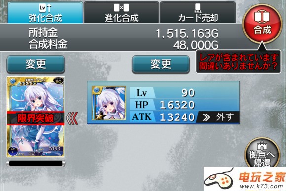以下文字叙述(用来限界突破的卡的经验值先忽略(?5☆从L1→L90正合成总共需要71张4☆L1(合成料金21205但是逆合成只需要1张5☆L76(合成料金48000而1张5☆L76需要49张4☆L1(合成料金14621。