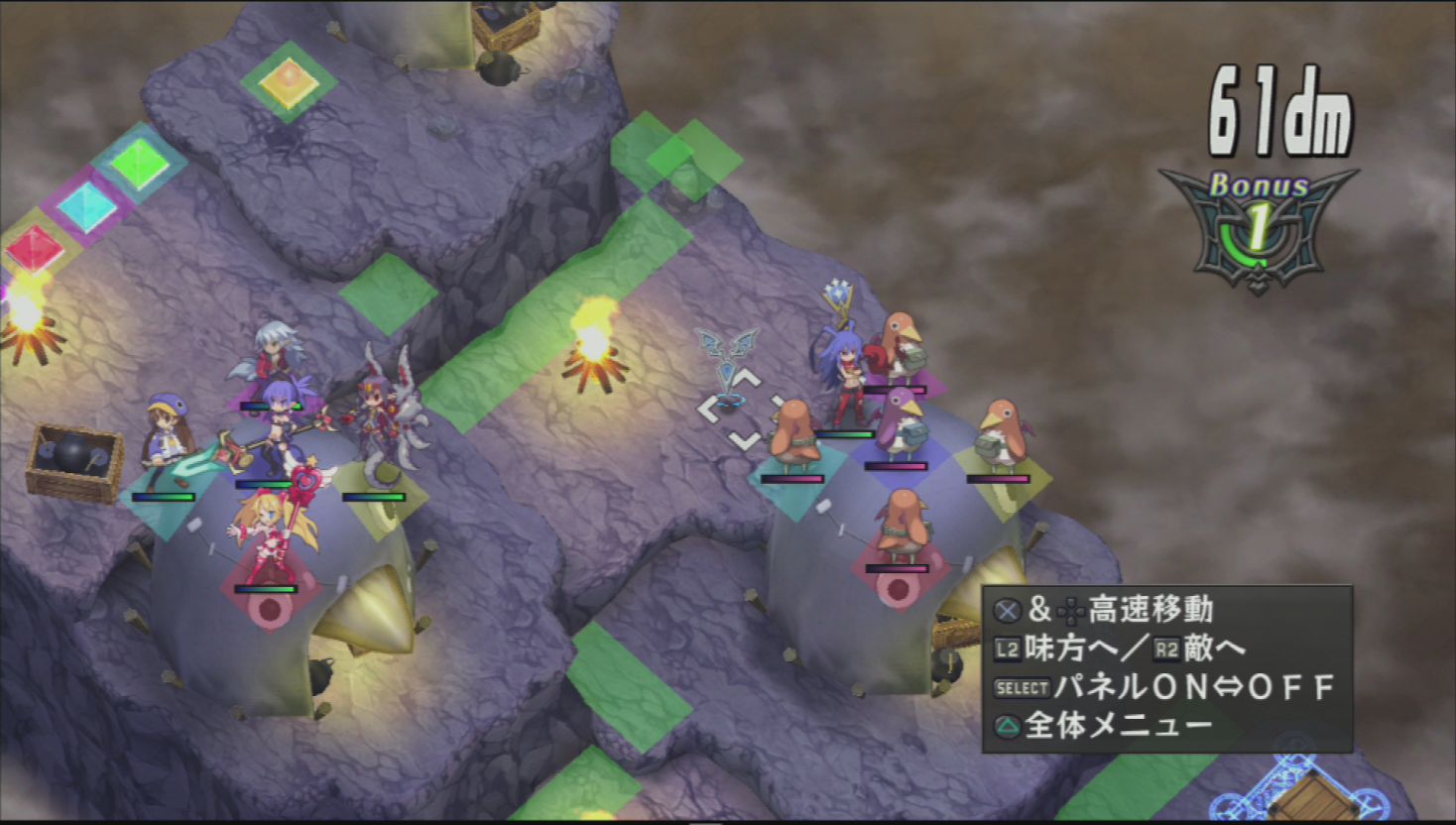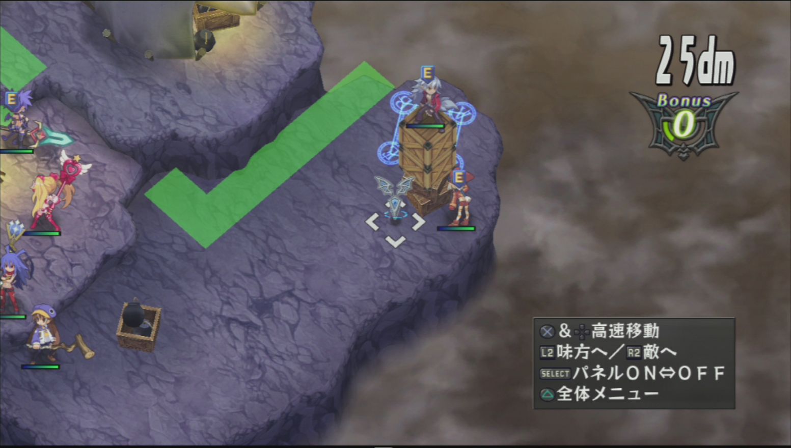 站在木箱上不会被攻击,让要练的人物站在上面打,女歌手可以用INT增加辅助,穿戴コスプレ用ネコ耳在单数回合被打不会损血。,留最前面的普利尼让他打,设法让普利尼中毒扣血,剩下的普利尼都拿起来丢出,爆光光,留下上方5只普利尼不杀,注意别太靠近上方的5只普利尼,等到杀了第一只普利尼之后,事情就好办了,因为ヴァルバトーゼ的魔ビリティー技会吸取敌人的20%能力,此时攻击力大增,然后在留个几只别爆,让他继续杀,继续加能力,直到他能够顺利一回杀为止。能够一回杀之后,练等的人别移动,因为移动之后,攻击加成会消失其他人打掉木箱,用投掷的方式把他送到普利尼中央,剩下的人占据增殖的5格,如图:
