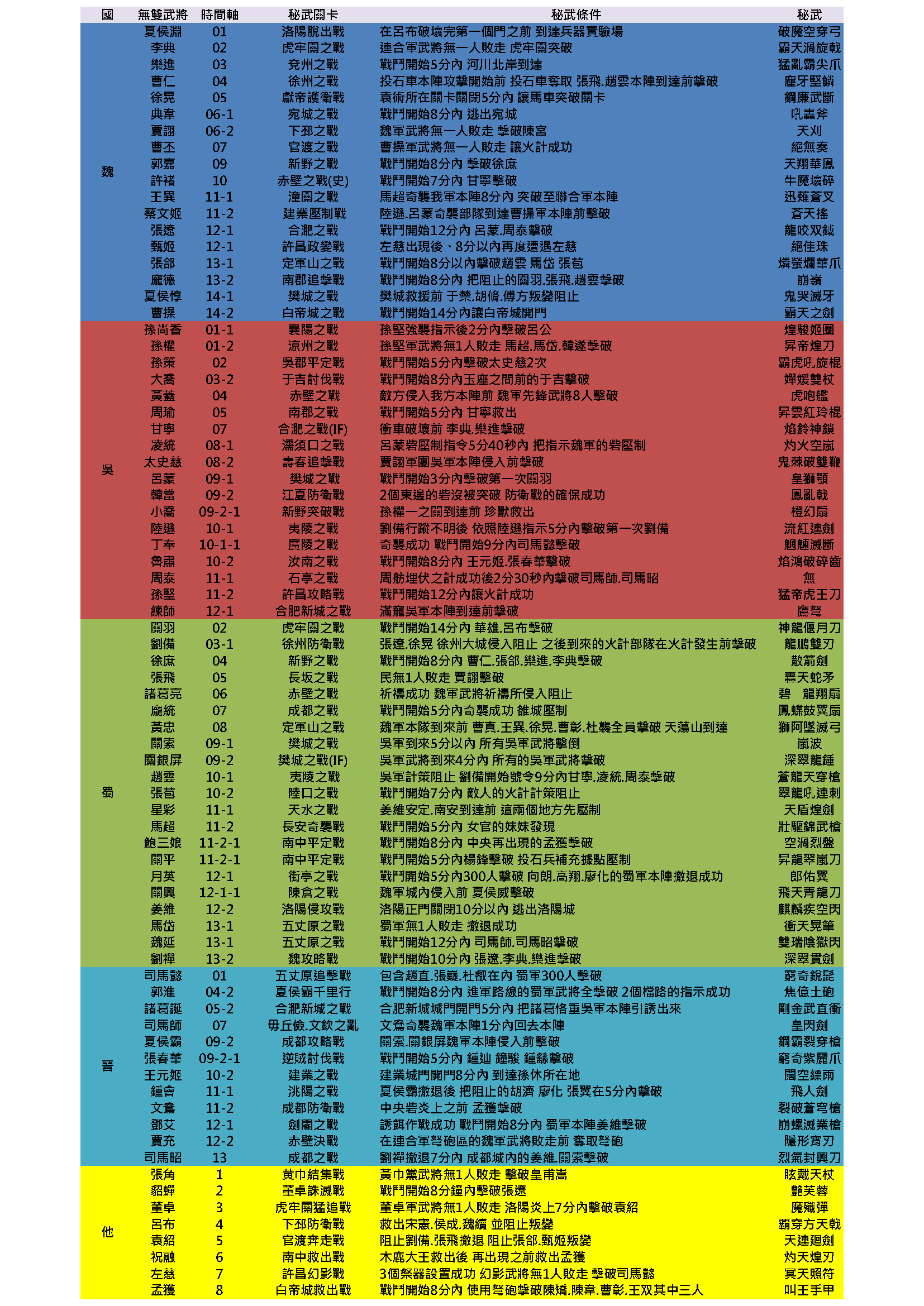 其实目前也只拿了夏侯渊的秘武,觉得线上的说明排版上有些乱,而武将也超多的,干脆自己用EXCEL先整理一下,以后要拿时也比较容易看,顺便分享上来!