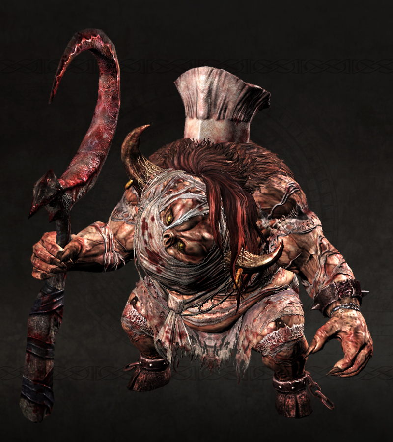 自らの料理で王を満足させたいという欲望に溺れ、魔物化した女性。“禁じられた食材”を得るために、愛用の包丁を手に今日も街を徘徊する――。
