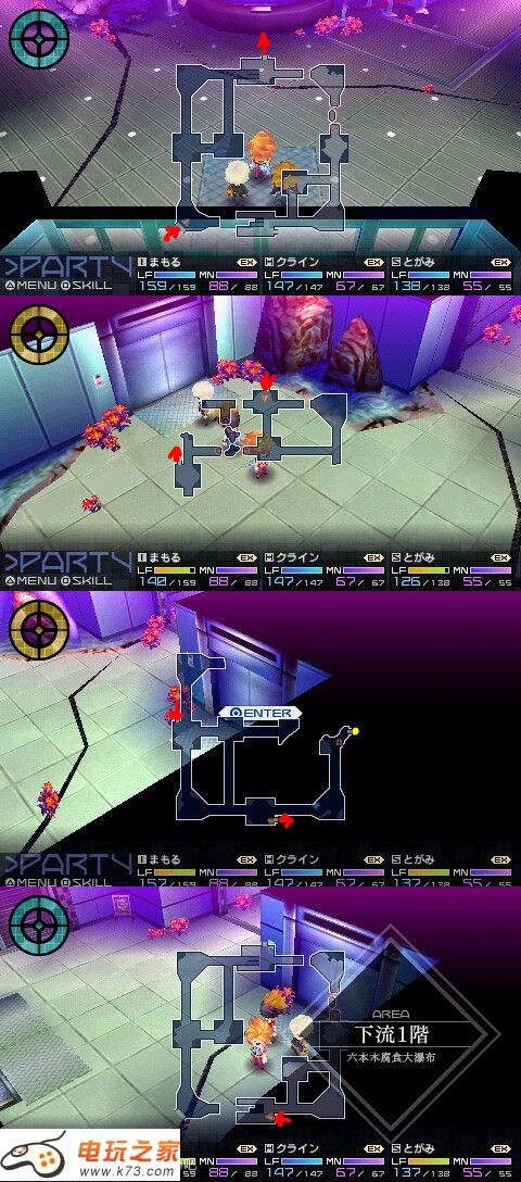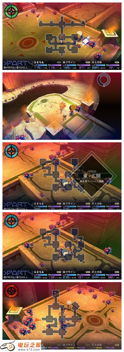 第六章东京地下遗迹地图,下楼梯后上下两扇门都可以进不要遗漏了,四扇小门我进去的顺序是从右至左,124可以打帝龙分身,打完以后中间打帝龙本体。第三间是单间所以没有截地图,顺便说之后有个幽灵的任务就在第三间。这个遗迹全·程·只·有·一·个·存·档·点。设计出这么恶心的地图的设计师可以去死100遍哦发自真心!……哦对了,这遗迹就连打帝龙之前都没有回复点哦❤6章的龙很难打要磨好久,记得好像物抗蛮强的,诈欺的奥义都只打掉一小截血……具体弱什么不太清楚,因为路上小怪都是冰系所以我猜弱火吧……。错了别怪我orz