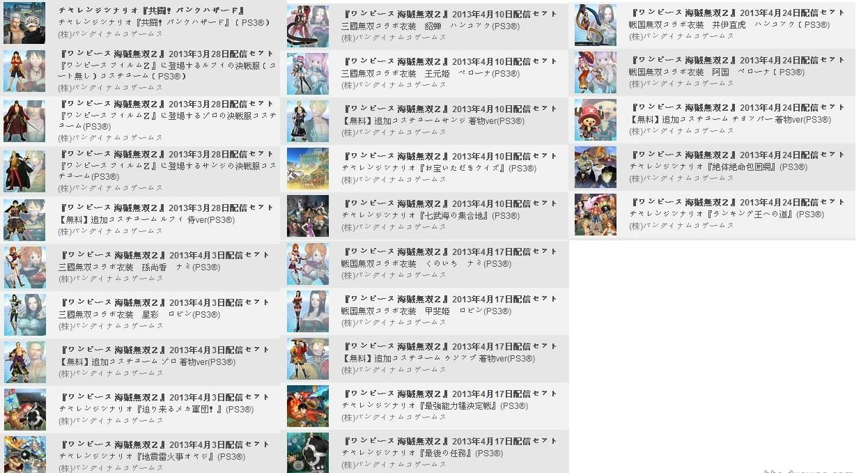 给玩家们送福利的来了,《海贼无双2》这款游戏一直都觉得玩的很带劲,所有的DLC也全部都下载了,下面就把目前的6弹DLC免授权对应的是日版全部放送给大家,喜欢的就全部拿去吧!