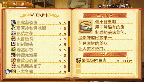 增加宿屋星级靠料理评价、每一话的剧情选项、钓上鱼王以及背菜单小游戏来提升