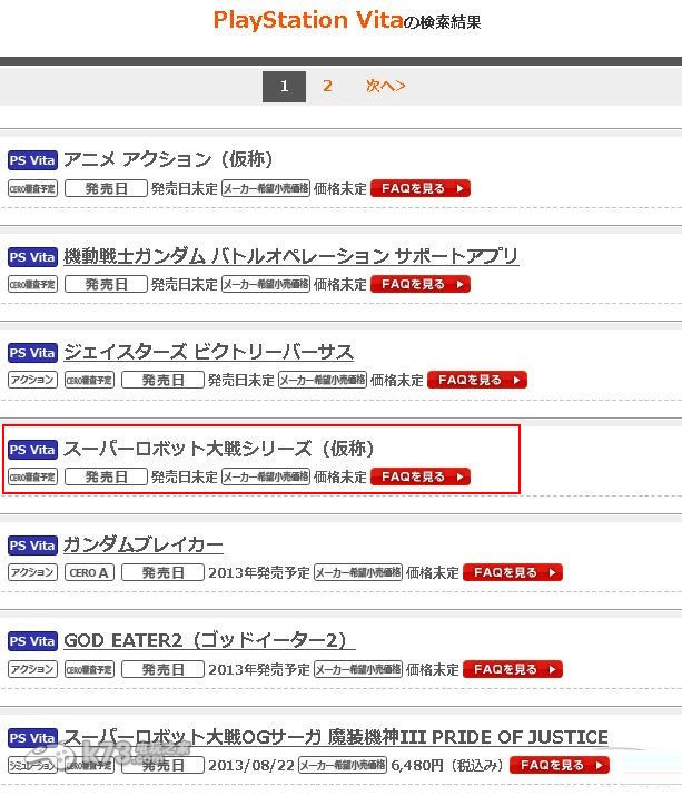 如果你前往NBGI官方搜索PlayStation Vita的字样的话,你就会得到下方所示的搜索结果,排在第四名的即是一款从未公开的新作,相信NBGI官方会在稍后恰当的时机公布这款新作,届时请留意我们k73的报道。