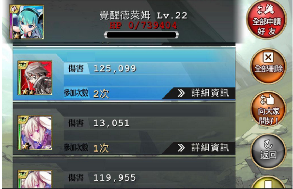 而一来一往的战斗过程,大部分玩家可能都会略过不看,不过建议还在调整牌组的玩家有空就观察一下,你会发现某些技能发动率较高,某些技能则几乎不会发动,那就可以考虑替换掉;出战卡片 要以有突破、等级高的卡片为主,没办法突破的卡片不要放,只有基本LV MAX 打妖精很不够力又吃COST 。