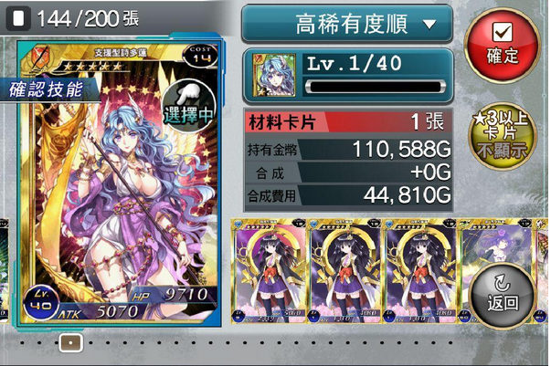星期三的秘境效果加成种类看似很多,不过每一项的加成幅度都不高,所以玩家可以把既有的AP 探索消耗完就好,不建议喝水冲,探索时可以挑第一区只消耗AP2 ,拼运气持续回复AP 和BC ,就可以多探索几次、多打几次妖精,一区掉的两张一星卡片建议让系统自动合成到五级时再卖掉,赚的钱会比直接卖掉多一点。