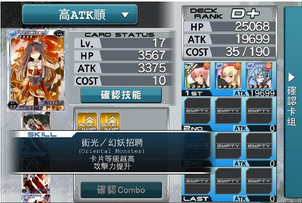 魔法之派中COST3 适合舔妖精的卡片只有兰索尔,卡片设计阳光可爱,突满的双围(攻击力+HP )也不错,碰运气回到AP 就可以多探索几次,而COST6 的艾塔德与艾文,则是可以让输出再高一点,比较不会那么难看,也比较有机会抢到尾刀,且这两张卡片都不会太难取得,打赢妖精就有机会拿到,艾塔德只要突破三次攻击力就有5900 ,而艾文要突破四次,攻击力差一点只有4600 ,好处是有机率回复BC ;另外艾塔德的技能也适合放在战斗牌组内,放在越后排发动技能的攻击威力越大。