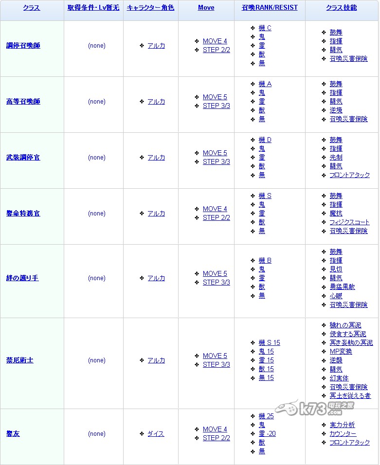 这里和玩家们一起来看看游戏《召唤之夜5》クラスclass召唤RANK/抵制职业技能一览,有兴趣的玩家可以自行参考,希望对大家会有所帮助!
