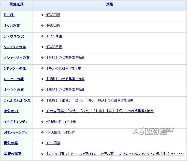 下面和玩家们科普一点PSP《召唤之夜5》中回复消耗道具效果一览表,包括了游戏中的基本回HP、MP及异常状态解药等道具效果说明,由其对于种了异常状态但不知道用什么药治疗的玩家可以参考一下!