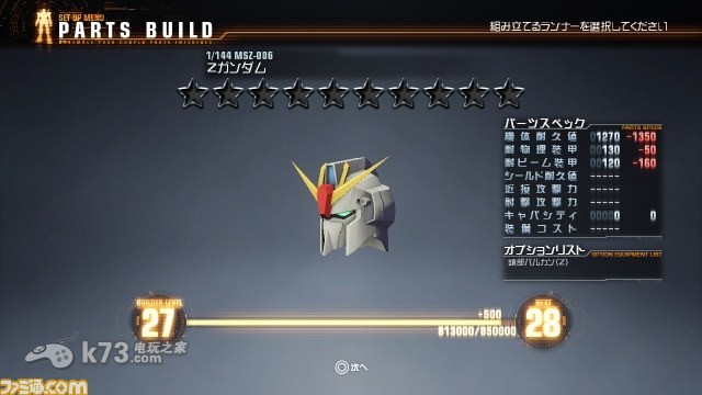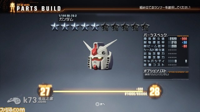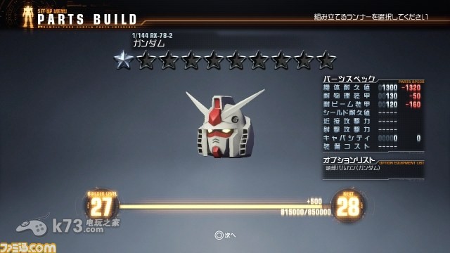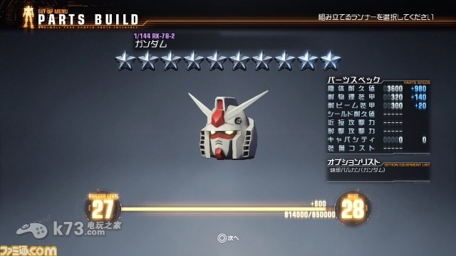 ★数不同的高达头部零件复数的情况,从上至下开始分别为★1、★5、★10。