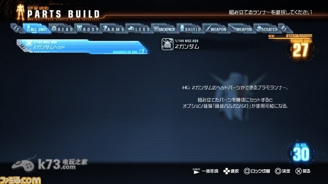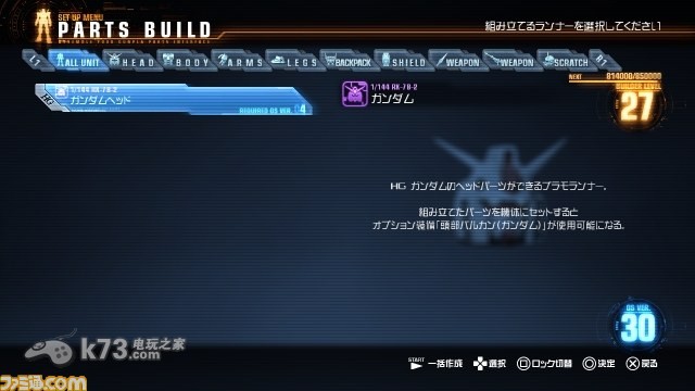 玩家在体验版中制作的零件(零件、武器、盾牌),可以继承一种正式版中高达(制作完成前的零件)的状态中去,玩家可以选择★数最多的零件继承到高达身上去。