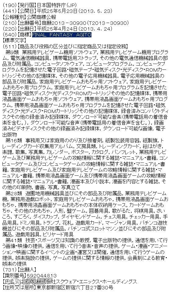 PSV最终幻想零式续作?SE注册《最终幻想Agito》商标