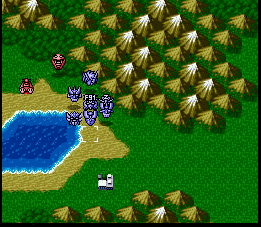 第34话。敌援军,第6回合格雷米,普露等4机在左方增援如下图。推荐打法,第1回合阿姆罗达到玛丽娅处,第2回合正树地图炮打下面6架,琉妮打上面的。命令选择回避。然后让敌人钱多的排队,我是在第5回合解决大部分敌人就留了几个的。第6回合留3个左下方的机械兽,注意在普露的浮游炮射程外面。6回合结束。