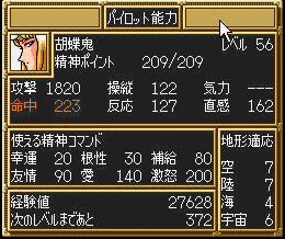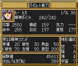 补给系-绝对主力樱和玛丽亚,次主力蝴蝶鬼。前2者精神255。补给在39-42话比较有用,最终话用不上。另外说一下铁甲系,合体练级法并不适用于铁甲系,即使练就了LV99的玛丽娅但也不能让她坐上王子的机体(就是宇宙7的那台),其他铁甲系的另外两台好像都是光线攻击的。虽然豹马到最后都不能2动但是1次热血2000威力的攻击还是相当可观的。