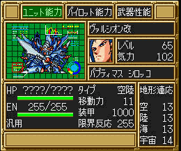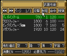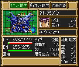 总结这次第3次我的攻略打法,上来笔者运用的是传统的投仍法和布阵法并抢了所有的BOSS,到后来发现无趣就开始频繁的使用地图炮练级法,即NEW引敌人,主舰戴上所有人走到边上去,引好了再开上来^ ^到最后可说是虐待敌人,自己觉得是把机战第3次该有的东西都打出来了。