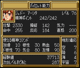 UC系-NT6-7人众,绝对主力普露,卡缪,捷多和露(发现,攻击力最快到顶2550,在第3次里面攻击强就是王道),次主力阿姆罗,夏亚和西布克(忘记他的攻击怎么样了)。可能捷多更强些,而且捷多有气合。但是捷多等级不可能有露高。其实应该把卡缪练到LV99,拥有加速更有用些。LV99普露拥有绝对的回避, 敌方0的命中率常出。一般到最后都是2次气合+1次热血的配置笔者觉得比较强些。说到机体方面绝对主力则是NEW,ZZ,百式和GP03,次主力另外4台浮游炮机体。值得注意的是ゲーマルク,HP和装甲高的可怕是我方最耐打的机体了(移动力低),GP03的地图炮也很厉害。