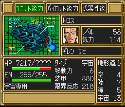 第43话。推荐打法,第1回合走位如下图,其他人都气合热血进主舰让卡缪(气合2下)的NEW反击两个手下。第2回合,主舰+百式+ZZ+GP03+正树+硫妮6大地图炮猛攻白痴三人组。此时对方就白河愁了,然后超级系加NT浮游炮按按威力从大到小抽打真古拉逊。由于这家伙1600的装甲还有看不见超级高的HP我也是就3-4次攻击没用才干掉的。2回合结束。总回合数281。