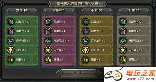 破解信息还透露了关于游戏道具使用方面的内容,玩家每局开始游戏都要选择本局使用的道具,其中包括求生包、陷阱包、**包以及万能包,所提供的道具各不相同,具体网友可对照图片查看。