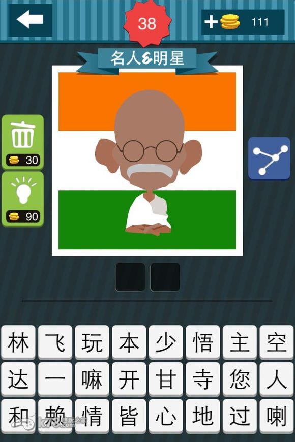 《疯狂猜图》中的名人&明星这一猜图中有这样一个谜题,一个白胡子戴眼镜的老头盘膝坐在那里,老头身上穿着白衣服,皮肤黝黑,你知道这个人是谁吗?