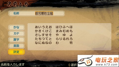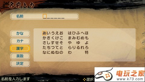 方法好下:先按△删除原有名字,然后方向键↑↓调至"漢字"。