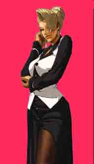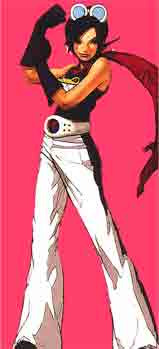 今集仍算是不弱的角色,但操控技术大大提高,所有三连脚有是由236B/D开始,派生技变成8B/D,6B/D,2B/D等等。但她的速度依然很快。HERO MODE新突进技624B/D看上去不太实用。空中236B也被消除。新超必杀“龙珠”仍然不知道怎么出。 |