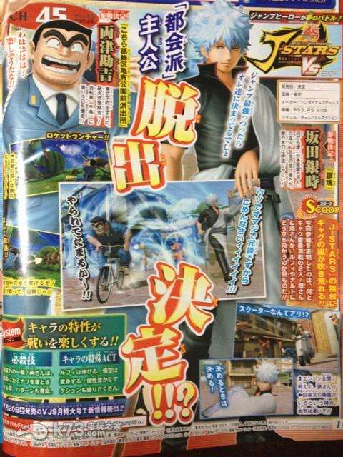 来自本周fami通的最新消息,Jump为纪念诞生45周年而在psv和ps3双平台发售的大乱斗游戏《J明星胜利对决/J-Stars Victory VS》于今天公开了两名全新的参战角色,他们分别是坂田银时和两津勘吉。