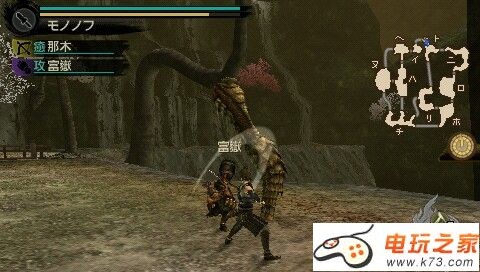 狼形怪物カゼキリ特点在于速度快,最喜欢跳来跳去和跑来跑去。先说这个跑来跑去,BOSS其中一种攻击模式就是直接向前冲撞。让人头痛的是这招几乎没有预备动作而且跑动距离长,伤害也比较高还好判定范围不算很大,所以打这BOSS的时候最好不要站在正面。另外有些同学可能看见它右爪趴地的动作会以为那是前冲的准备动作(如上图),那绝对是坑你的,前冲一定不会有这个准备动作。当你看见它磨爪子的时候那100%是在发呆叫你去抽他,有时候它转动头部作咆哮姿势的时候也同理。