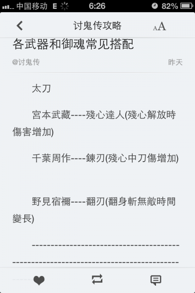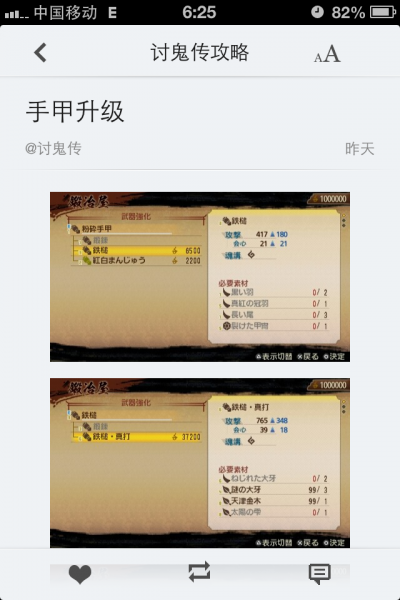 本人也刚玩讨鬼传没多久,感觉三国无双的游戏公司去改版了怪物猎人,像两者的结**。但是,总体上来讲还是不错的。时间有限,手甲刚打到第三幕第15个任务,貌似应该是建军。出于兴趣,利用开发软件,弄了一款手机的APP,方便大家在上班不能撸鬼时,在户外移动时,用手机看点讨鬼传的攻略啊,咨询啊啥的。