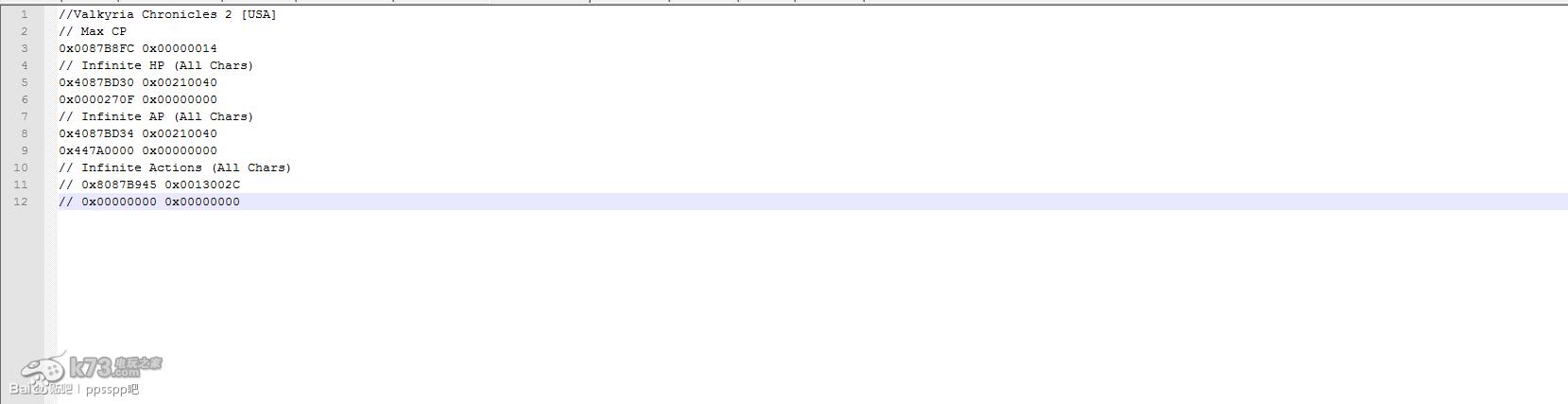 而PPSSPP的Cheat格式为:
