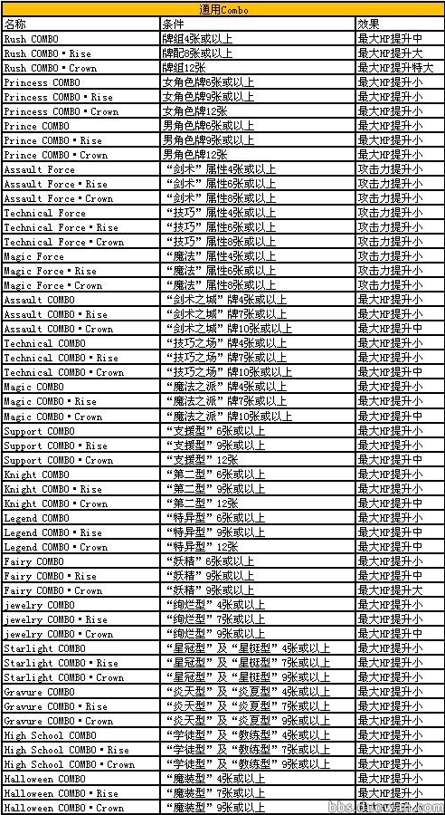 Combo分为通用combo和特殊combo,通用combo往往是指同类型卡牌只要在数量达到要求即可产生的增益效果,而特殊combo则是需要固定的卡牌搭配而产生的增益效果。