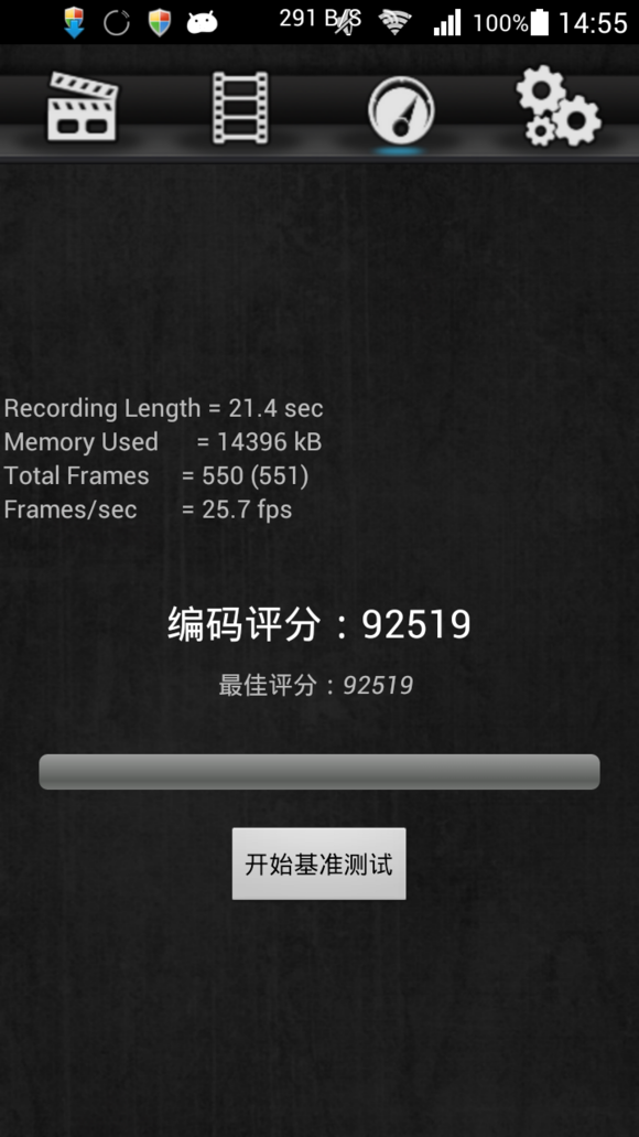 安装之后打开上图红色那个图标,并且授予权限,第一步先测试一下你的机子性能,如下图