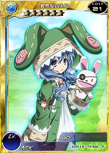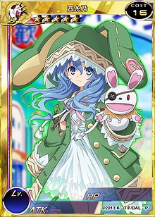 利用『断绝时代』的科技,从十香原型分离出来的小小十香,比本体还容易肚子饿,活力十足,喜欢到处跑来跑去。成绩十分优秀的少女,也是运动能力全能的完美美少女。但几乎不表现任何情感,对人也很冷淡。为了追查精灵的下落而使用时空装置来到不列颠的异界型鸢一折纸。精灵少女,害羞怕生。灵装「神威灵装•四番El 」是一件饰有兔耳的绿色斗篷。能冻结周围的巨大人偶「冰结傀儡Zadkiel 」,善于以夹带灵力的