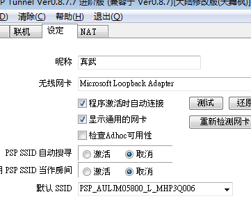 上述做完之后,打开PSPTunnel大陆修改版,在设定里做如下设定