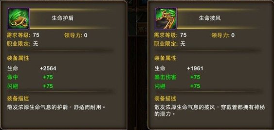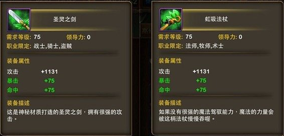 圣灵之剑和虹吸法杖及命运之锤、灵敏之弓类武器主要是用来增加攻击之用的,而生命头盔、生命盔甲、生命护肩及生命披风主要是用来增加基本属性或者附加效果,而紫色的开荒之戒主要是用来增加一些附加效果的。