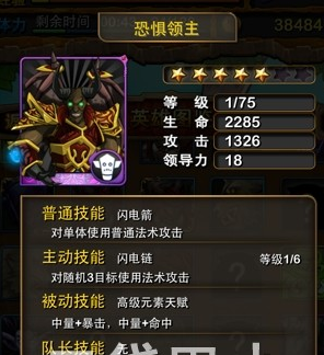 BOSS-恐惧领主+ 主动技能:高级闪电链 生命:81904|攻击:7274 |