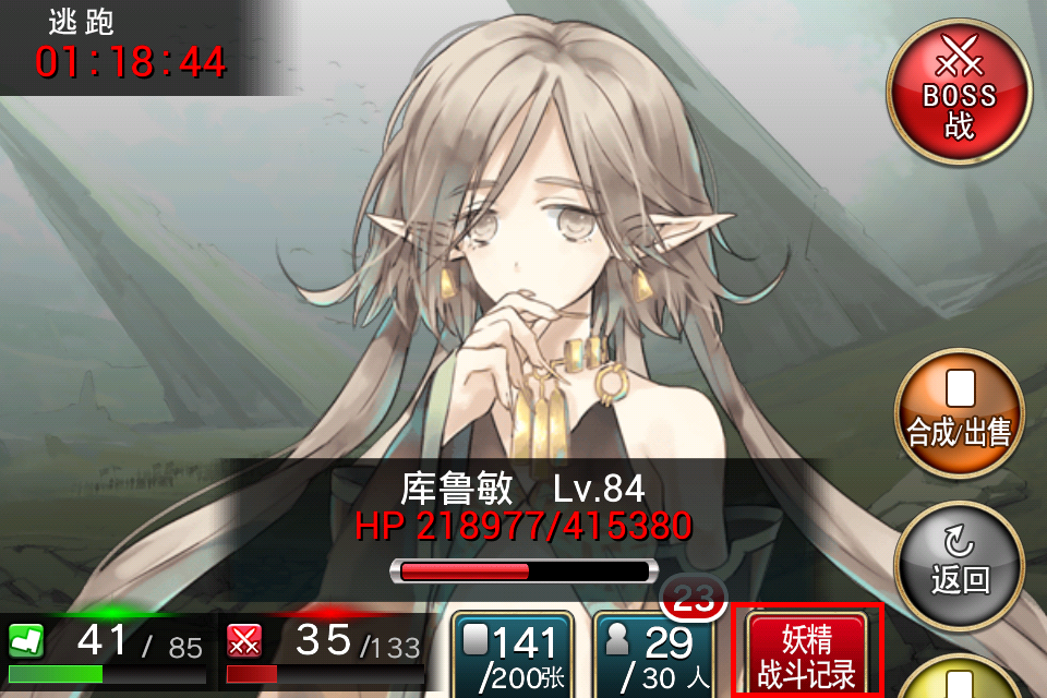 (点击菜单-妖精选择,进入妖精战斗界面)