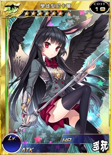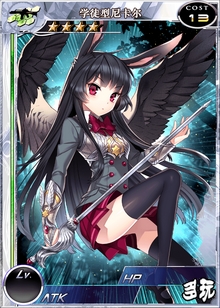 | 背景资料 | 为了提高学习能力以便提高国力和人民的生活水準,作为某种学习系统的重要部分而被製造出的特殊骑士。由于定位是饲育委员,通过将兔子和乌鸦的因子混合而製造。在製造阶段似乎出现了某些问题,没有表情。本身是热爱小孩和动物的温柔少女,然而却给人一种冰冷的感觉。 | |||