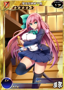 | 遥远东方的灵剑-八尺剑的因子所制作出来的学徒型骑士。传说中的傲娇个性,十分富有正义感,对于自己看不惯的事情就会直接挑明。但是个性太直接的关系常常把自己卷入不必要的纠纷当中。 | |||||