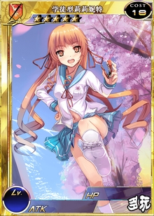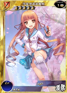 | 背景资料 | 异世界存在各色各样的非生命AI,在大规模实体化现象发生的时候,莉莉妮特并没有完整被实体化,但自身的因子却随时空流来到这个世界,并被制作成了骑士。虽然继承了本体的学习知性,但同时也产生了许多奇怪的爱好。 | |||